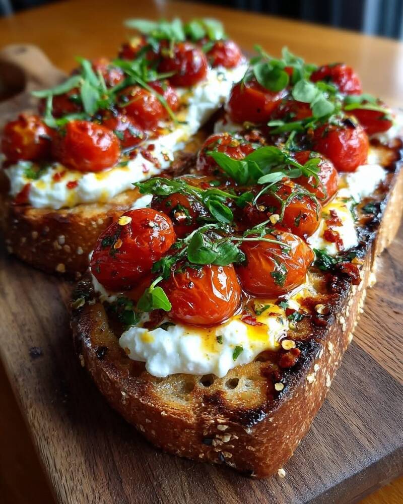 Whipped Burrata & Roasted Tomato Toast with Chili Honey Drizzle